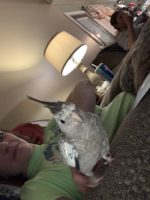 She is white and grey, answers to Stormy Girl. Loves broccoli and strawberries but most of all millet and pine nuts. Very tame doesn’t bite.