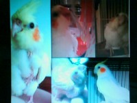 Sonny is an 8 week old yellow male with bright orange cheeks and is missing feathers on top of his head and under his wings. He is very friendly.