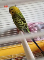 Mango is a male parakeet that’s 4 month’s old and is partially tamed. He also has new feathers coming in on his head.