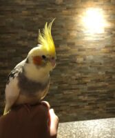 He’s about 4 months old, likes to hangout on people’s shoulders and play with the necklaces.