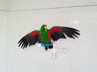 Male Eclectus named Fred. He escaped on August 2nd 2016 from North Haven island. Was last seen heading east over the treeline.