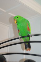 he is an Eclectus Vosmaeri his tail his yellow and red
