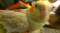This is a cinnamon pearl pied cockatiel named Backy. It weighs about 94 grams. It flew out the front door at 3:00 PM on Friday, 10/18/2013. It has a band, the number on this band is MD 52G XX XXX (owner will supply complete band information). Fond of saying korean words “baki” and “donggi”.