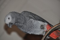 Robin is only 1.5 years old and he flew away for the first time in Laurel, MD (close to Van Dusen Rd). Please contact me ASAP if you see a grey parrot with red tail #(240)353-7407