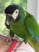 Bob flew from Searsmont, Maine, in a southwestly direction (although he could be anywhere). If you live in Searsmont or any nearby town, please step onto your lawn near the end of the day while it is still light and call out, “Hello, Bob!” If he is in earshot, he might answer. He is about 12 to 14 inches long, mostly green, with a black head, white face, and black beak. We have had him for 16 years. He is much loved and we are desperate to get him back. Please email Amy4Birds-at-gmail.com with ANY news, or possible sighting (or hearing a parrot calling or talking from a tree).