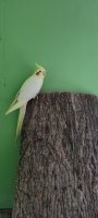 Lutino Cockatiel, pale yellow wings, brown spot on beak, no band