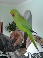Green Indian Ringneck, his red ringneck started to appear.