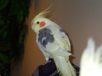 Bird is yellow with dark grey on its wings. I believe it is a male and likes to make noises and do the male strutt. Doesn’t like coming to you to much.