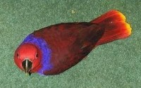 Vos Eclectus. Red and Lavender with black beak.  Missing from outdoor enclosure on Turnpike Rd. in Supply.  Please call if you see her   910-409-2592