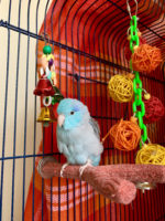He is 1.5 years old and tame but does not like hands. I pick him up with a chopstick. He likes millet, seed, strawberries, avocado, popcorn, rice, and bread.