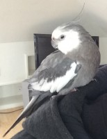 My little friend responds to Sparkles or Sparks, loves to hear the water running and he sings along. Sparks does not have band, I removed it a couple of months ago. I don’t know if all birds love shiny stuff but Sparks loved my studs and would fight me till I had to take them off. Perfect, tall & pointy Mohawk! The cutest little thing.