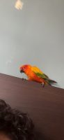 He’s a very chatty bird. He likes to mock you coughing and sneezing. He would make his own coughing noise and chirp “What’s up” (2 chirps) he’s food motivated most with nuts and pistachios. He is banded on his left foot (our right). If you have seen him please let us know thank you.