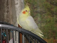 Her name is Lupe and she is a yellow and white colored cockatiel with rosy cheeks who escaped from her home in Oakhurst NJ. She responds to her name, and she is very friendly. Please contact Rebecca at 908-xxx-xxxx if you see or have her.