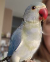 Skylar is IRN- light blue with long tail feathers, white underbelly, and yellow splotches. He is an adolescent and had no ring when he went missing. He has a leg band, but I’m not sure what the numbers on it are. He should respond to his name though as he has some recall training.