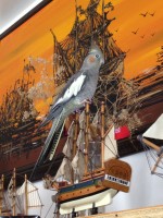 Gracie is a sweet, friendly bird, mostly quiet, sometimes squawks when she’s flying around, or wants attention. A few weeks ago most of her tail feathers were caught and pulled out, leaving one. Now, her tail will be about half grown in. The flight feathers on her right wing are a little longer than those on her left.