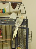 Bright Yellow tail, mostly grey and yellow. Responds to ‘baby bird’, ‘Tweets’ and ‘pretty bird’. Loves having her neck scratched and sitting on people’s shoulders!