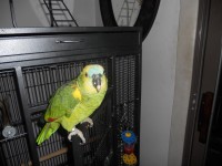 Gus is 7-8 years old Green parrot with yellow cheeks and blue top of head, has fl tag [full # on file with 911PA], he is very talkative bird and screams like a baby when ignored, will step up sit on your shoulder for hours has abondment issues last seen in monsey ,chestnut ridge spring valley new york area has returned twice without any luck of return.got scared off by large garbage truck. his beak has a rub on the front, he is a dark green with red yellow and black on tail feathers and red yellow sholders