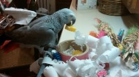 Jake is a 2 year old African Grey parrot…He talks a lot…..says our dogs’ names…Callie, Mindy, and Heidi. Also says “Susan”. He has had a small scratch near his beak for some time, So he may still have it. Please help! $1000.00 REWARD