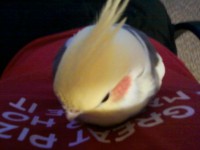 Flew out around 2 o’clock 11/29. Friendly bird. Says hello. Responds to “Larry,” “Hello,” or whistling