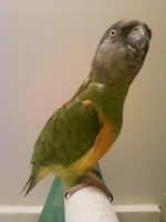 Kermit is Lost and very frightened. He can talk a little bit, he says Peeps, my babies, and mimics lots of different sounds. Ie: washing machine, microwave etc. He also knows how to play dead. He does bite when scared and prefers males. He is fully flighted and managed to zip out the door during a rainstorm. He went missing on Summer Dr. in Dublin, Oh. We have looked everywhere but we need your help to find him. If you spot him or have managed to catch him please call:
