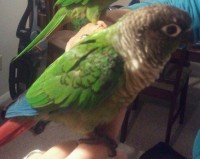 Sweet tame boy, green with grey head and red tail, speaks some and pretty clear…MISS HIM TERRIBLY!!!