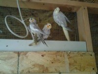 She is full grown and Yellow Pied color. She is tame but will probably not come to a stranger. If you catch her or see her please call or text me asap. I am offering a reward for her. She is in the top right of the picture with her two babies. She has a very sad mate. 405-408-1414