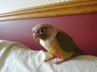 2 yr old male Pineapple Green Cheek Conure going by the name ‘Amadeus’ left home through the sunroom door as my mother went out after being frightened from seeing some crows by the window. He is from a loving and caring home, knows a few words, knows a few tricks, is flighted, friendly with people and warbles constantly. Please contact with details. Amadeus has been away from home since Friday evening and left from the Susan Drive area by Upper Horning Rd.