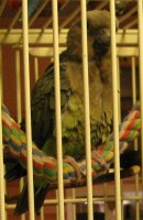 Olive is a red bellied parrot. Body is mainly green w/ dark head. (Body is various shades of green). She has red eyes. She is very friendly and loves to climb up and sit on yr shoulder. She can talk. If you see her, or anything resembling her pls contact us. Thank you for yr support. Rob Froom 503.367.2951