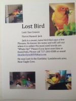 Most used phrase; ” What’s up”. Jack is very friendly. Likes to be on your shoulder.