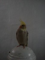 SHE IS 2 YEARS OLD , VERY FREINDLY, HE NEVER FLY OUTSIDE EVEN WHEN THE DOOR IS OPEN, BUT THIS TIME SHE SAW A FLY AND SHE SCERED SO SHE FLEW AWAY. SHE LOVES TO PLAY WITH WATER. SHE LIKES SOMEONE TO PET HER ALOT