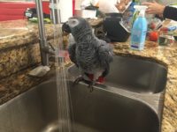 Congo African Grey, 6 years pld, no band, large paws large beak, has about an inch of feathers plucked on his chest. Family member, please help. He did not escape, he got scared and flew away because he gpt confused.