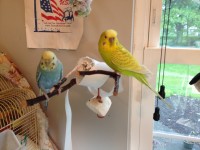 Sunny is a 6 year old male yellow & green Budgie Parakeet. His cere is missing, (due to a spat with Buttercup, who is pictured with him – the blue Budgie with Butter colored crown.) Lost on Sunday, July 14, 2013 in Plumsteadville, PA near Curley Hill Road). Reward is available if you find him and return him to us.