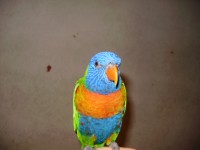 has a tiny dark mark halfway down the front of its beak, loves honey and ham. can say a scratchy hello. Very important pet. please contact 0439444688 if found