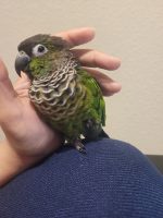 Kirby is tame and flies well. She escaped through a partially opened window around 4:30pm. She responds to her name and is friendly enough to land on shoulders and heads. She can be nippy when scared and is most likely disoriented. She does not get out very much
