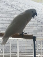 Today (June 16th 2013) my 1 year old Umbrella Cockatoo flew away and I am hoping he will find someone to help him. He is completely domesticated and isn’t able to eat on his own regularly. He is in dire need of assistance and must be hand fed. If you find him. Please bring him back to me by calling 224-622-7136.