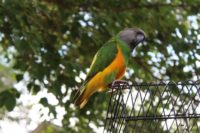 African Senegal lost 7/23 on corner of Clio Rd and Dayton. Green with orange chest and grey head. Looks darker when wet. She will likely step onto hand. She is approx 7 inches long.