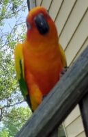 2 year old sun conure escaped from our home on 6/20/2021. Very friendly and very loud. We call her baby/mamadeemies. Steps up and is VERY friendly