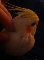 Bald spot under crest, may have a ratty tail, yellow/white with bright orange cheeks. She is very quiet for a cockatiel and is very sweet, shy, and cuddly. She DOES NOT BITE, she pecks very gently. Crest is rarely down, almost always in a neutral/content position. PLEASE help if you know anything that may lead to me finding her…