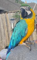 Doesn’t take off on its own, loves nuts and takes food from hands. Loves macaw talking videos