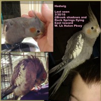 She is only 5 months old. She calls to me a lot and I call to her with a high pitched wolf whistle. I found which tree she was in and tried to coax her down. She got scared and flew off and I havent heard her since. She loves millet seed.