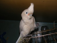 Scream Mom, momma, Ma, otherwise doesn’t speak, but communicates with foot signals. Understands most of what u say to her. Open close means yes. Pumping.leg up & down while opening & closing toes means No. Puffy prefers to drink from a cup. Will go potty over toilet or garbage can If u hold her over it and ask. I am disabled. Puffy is my companion. I’ve had her since she was weaned. She is used to being cage free and allowed to roam about at will in the house. If found, I can have u ask her questions to which she will respond. She is self aware & very smart. Her favorite seeds are Safflower & millet sprays. She only eats a small handful once a day in the evening. She likes scrambled eggs and oatmeal with fruit & Fruit Blend Zupreem. Please help me bring her home.