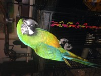 Will perform “step up” to arm or pole if instructed to do so. Can be coaxed with waffles or walnuts. Really likes waffles. Was lost on December 30 2015 from Purcellville Virginia can call or text Janet at 703-203-2670 if found or spotted.