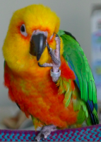 Our parrot flew away on April 19 in Crossroads area. Her name is Zinda, she is green with yellow head and orange belly also she has metal ring on her leg. Please, let us know if your found or saw her. Thanks!