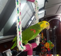 Rocky is a double Yellow Headed Amazon Parrot. She is very vocal, and knows many words including knowing her name very well.