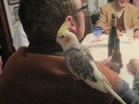 Ke-Ke is a female cockatiel with yellow and grey body and orange cheeks. She responds to the wolf whistle or will chirp to any whisting. She may land on your head or shoulder. Her wings have never been clipped, but walk inside with her on your head and she will be alright. She loves scrambled eggs and will eat from you hand. please call me if found.