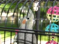 Gray female. Oranage dot on cheek with a little yellow in the face. White speckle on her breast area.