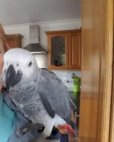African grey worth red tail. Not used to being out. Will be terrified hungry and cold.