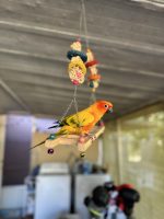 COOKIE is a smart and friendly conure , loves hanging on your shoulder and loves red soda cans (empty of course) she loves dances , calls out her name when wants attention. she screams what cookie in Spanish( que cookie. she also loves to sing and water.