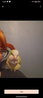 His name is Quaker Oats but he will come when I call Marco like the game Marco Polo. He is green with blue tipped feathers on his wings and a grey chest. He has a mark above his right eye where he has new feathers growing in. He doesn’t have a band on his leg. He does the catcall whistle and when he feels like it says peek-a-boo up up come here and good boy. He is extremely friendly but partial to women