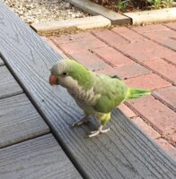 Older Green Quaker Parrot. Name is Paco. His wings have not been clipped in a long time so he can fly pretty high and far. He responds to his name.